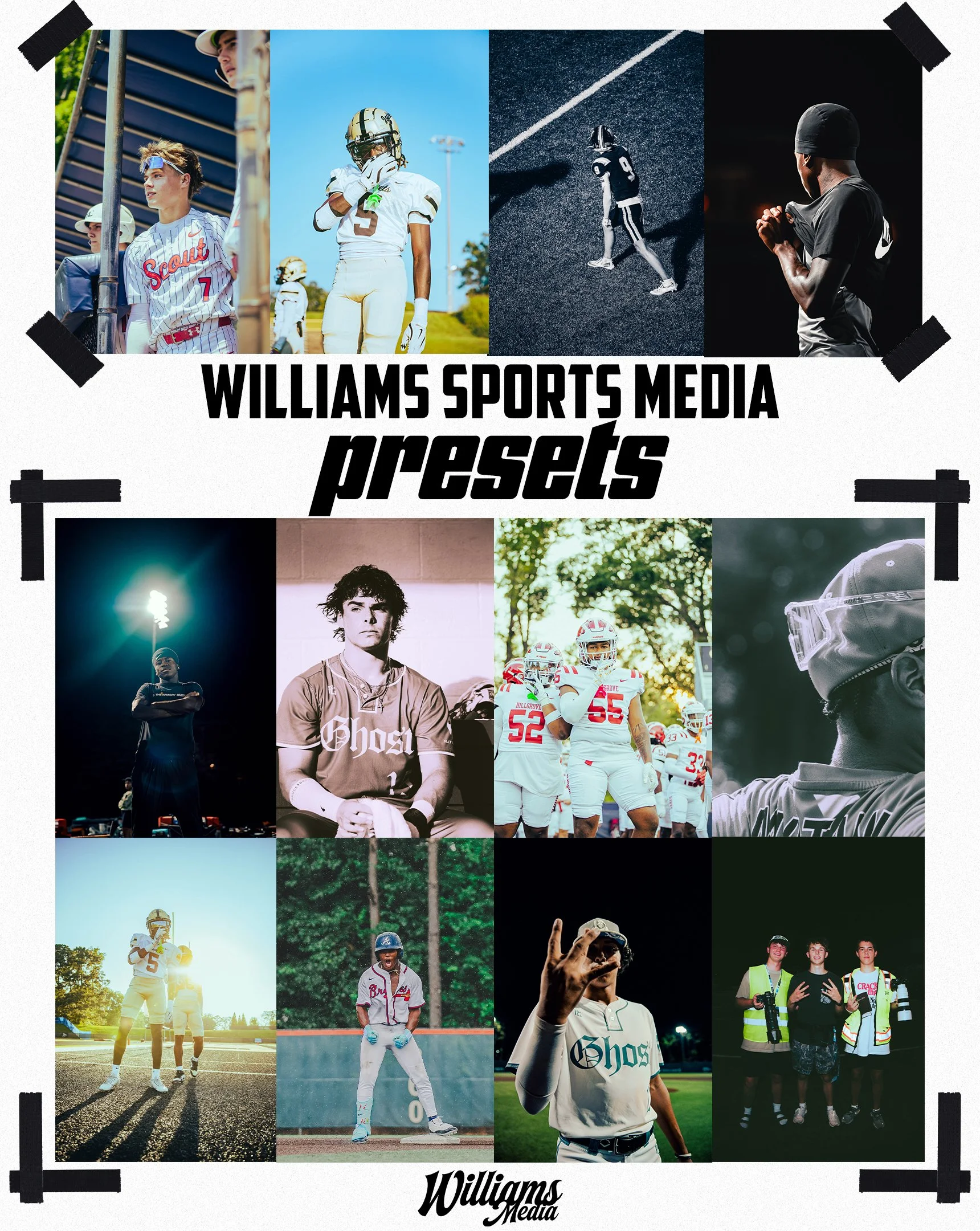 Shop the Presets For use with Adobe Lightroom Williams Sports Media Presets Pack $30.00 Add To Cart Added!